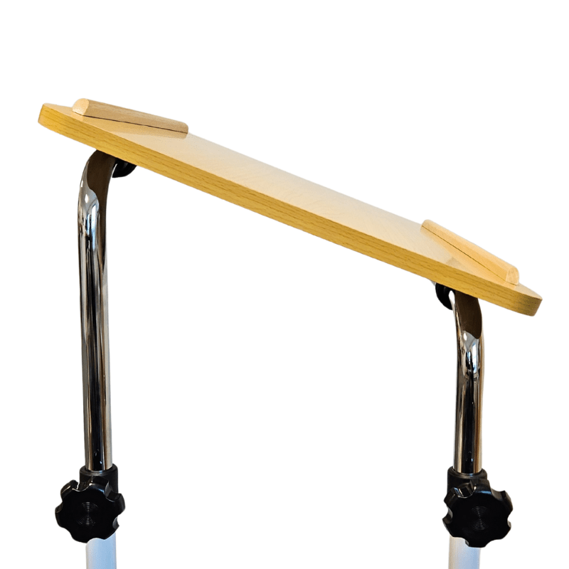 Dette praktiske sengebord er designet til at passe perfekt omkring møbler som seng, stol eller kørestol. Det giver dig en fleksibel og komfortabel løsning, uanset hvor du ønsker at bruge det.