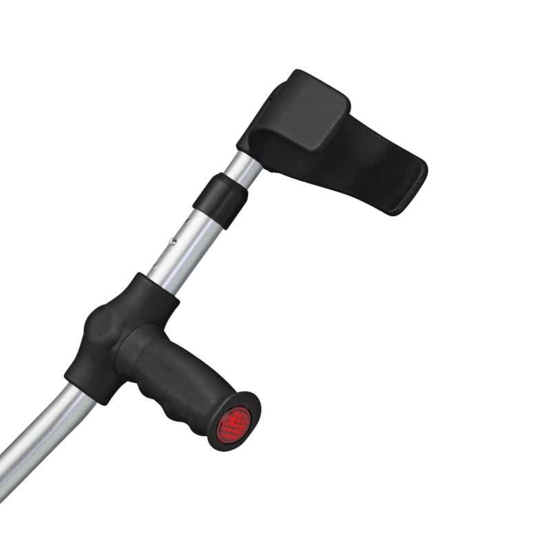 Selve højde på krykken kan indstilles i højden 57-75 cm. Underarmsstykket kan reguleres fra 14,5-17,5 cm.