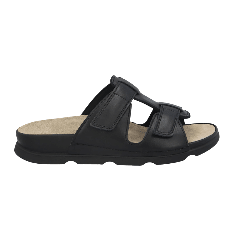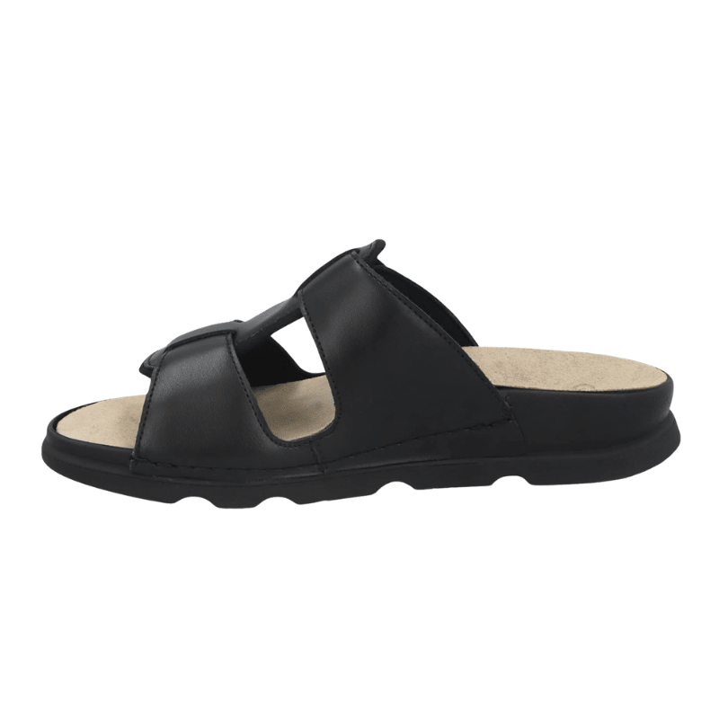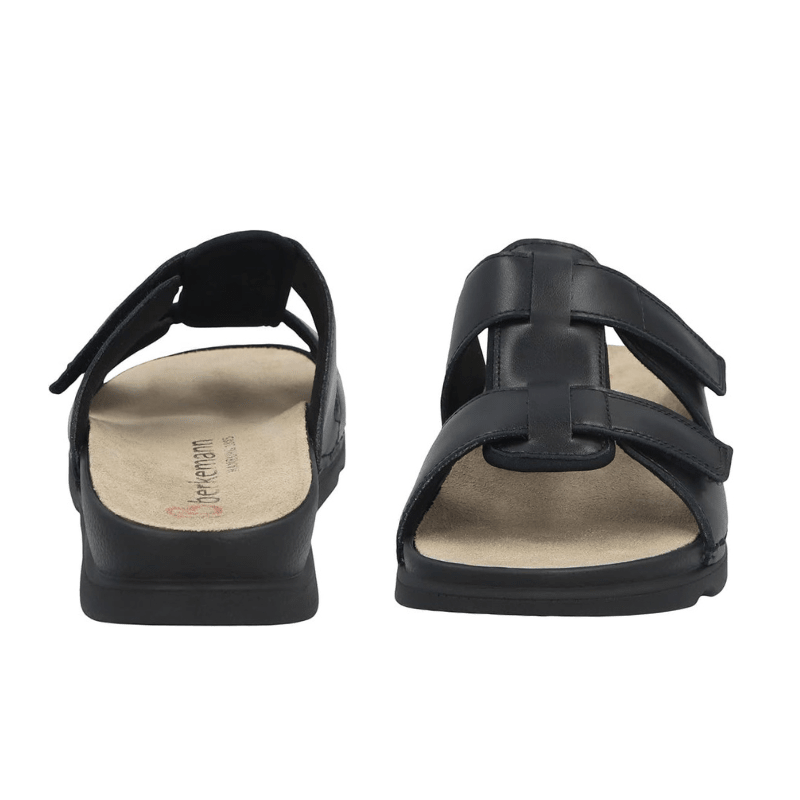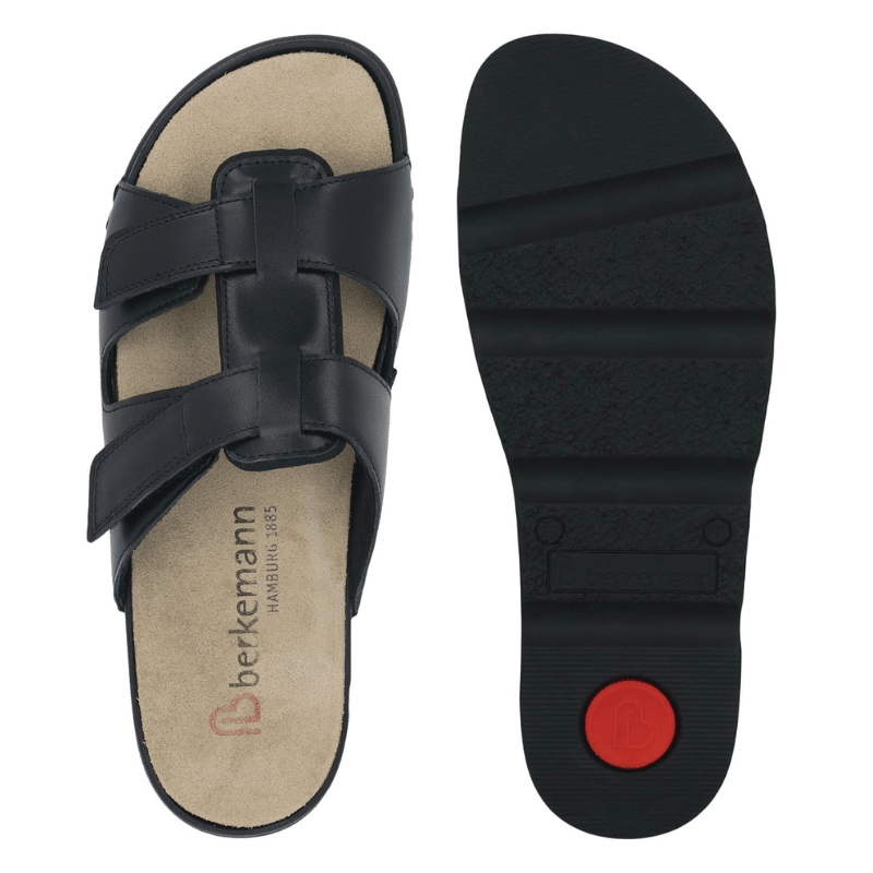 Let og luftig damesandal fra Berkemann i sort læder med et enkelt og stilfuldt design.