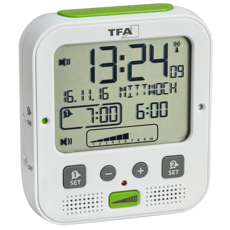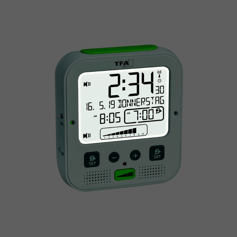 - Zwei unabhängige Alarme für verschiedene Zeiten