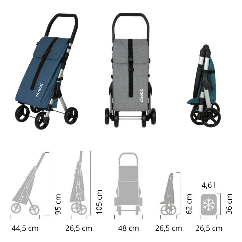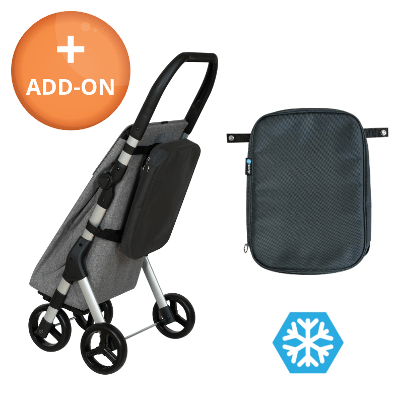 Etwas ganz Besonderes an diesem Modell ist, dass du eine abnehmbare Kühltasche mit 4,6 Litern zusätzlich erwerben kannst, die sich leicht an der Rückseite des Einkaufswagens befestigen lässt. Die Kühltasche ist ideal für Kühlwaren und hält deine Lebensmittel auf dem gesamten Heimweg frisch.