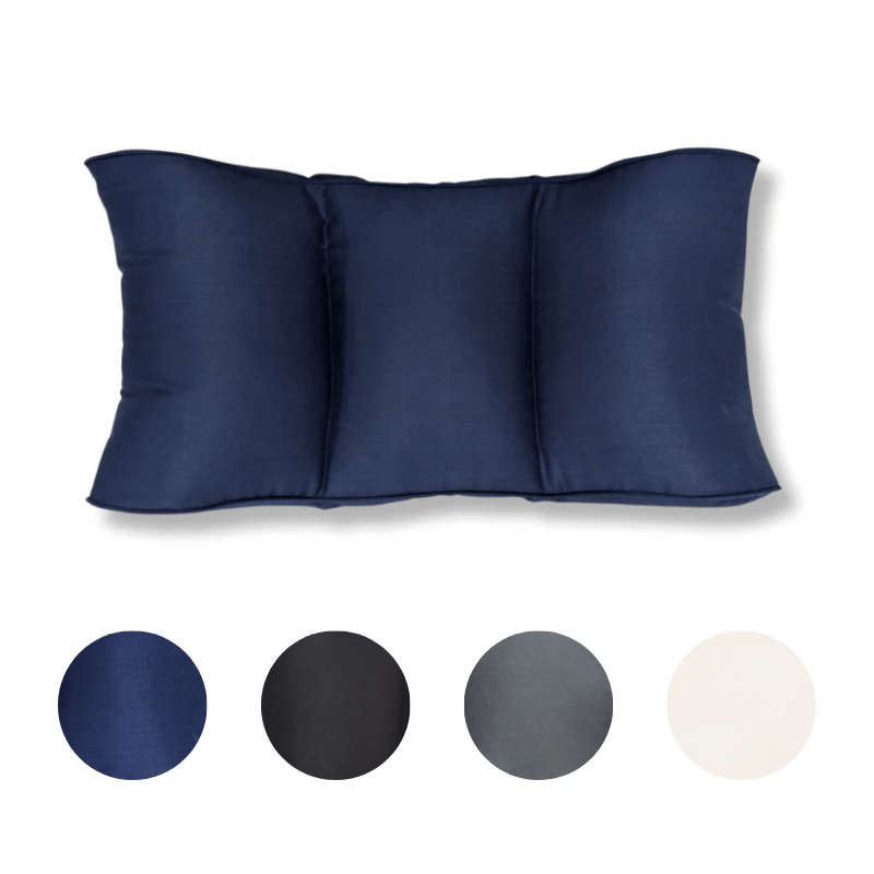 Stützkissen gefüllt mit einer leichten und luftigen Mischung aus biologischen Kapok-Naturfasern und Recyclingfaservlies, das formstabilen Halt für Rücken und Lenden bietet.