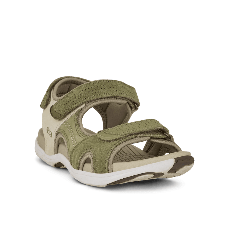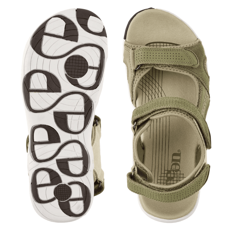 Leichter und luftiger Green Comfort Sandale in einem beruhigenden Grünton mit einem Obermaterial aus Leder und Wildleder. Die Sandale verfügt über drei verstellbare Klettverschlüsse und eine weiche Polsterung sowie ein Soft Tex Futter an der Innenseite für zusätzlichen Komfort.